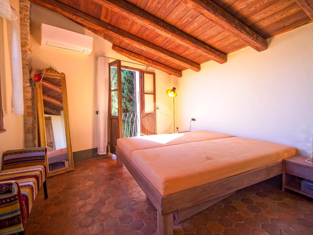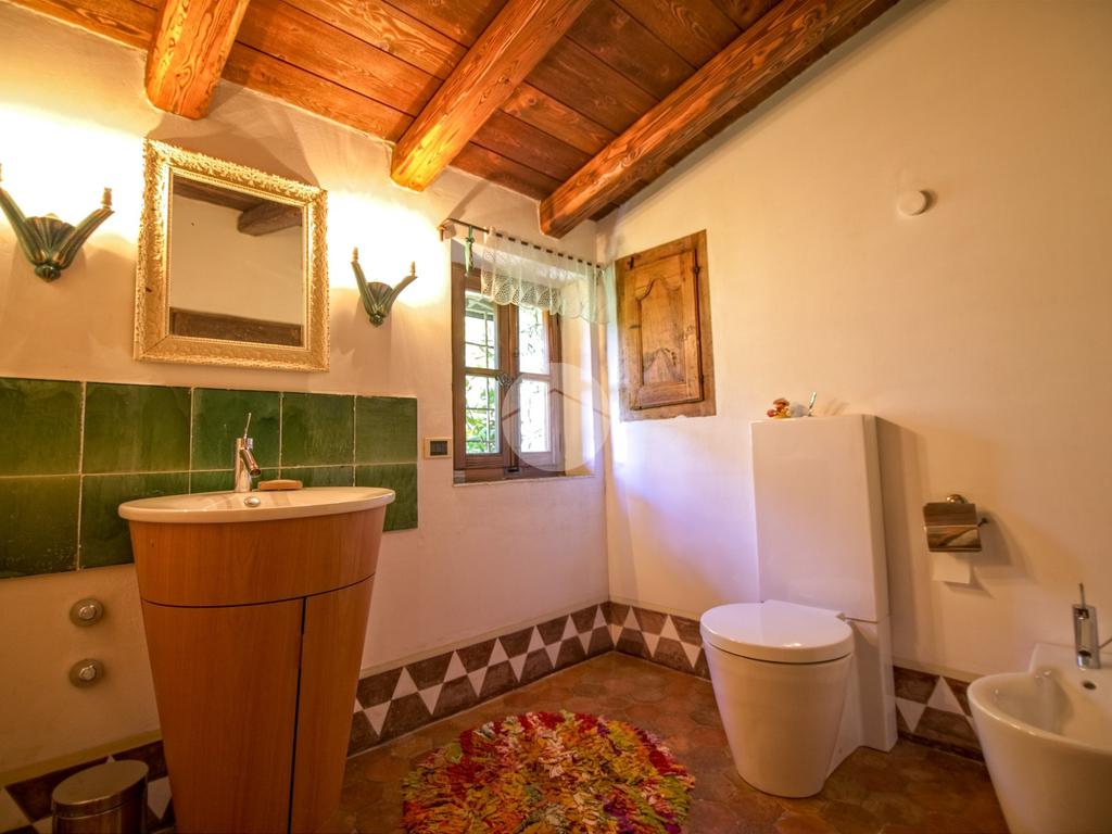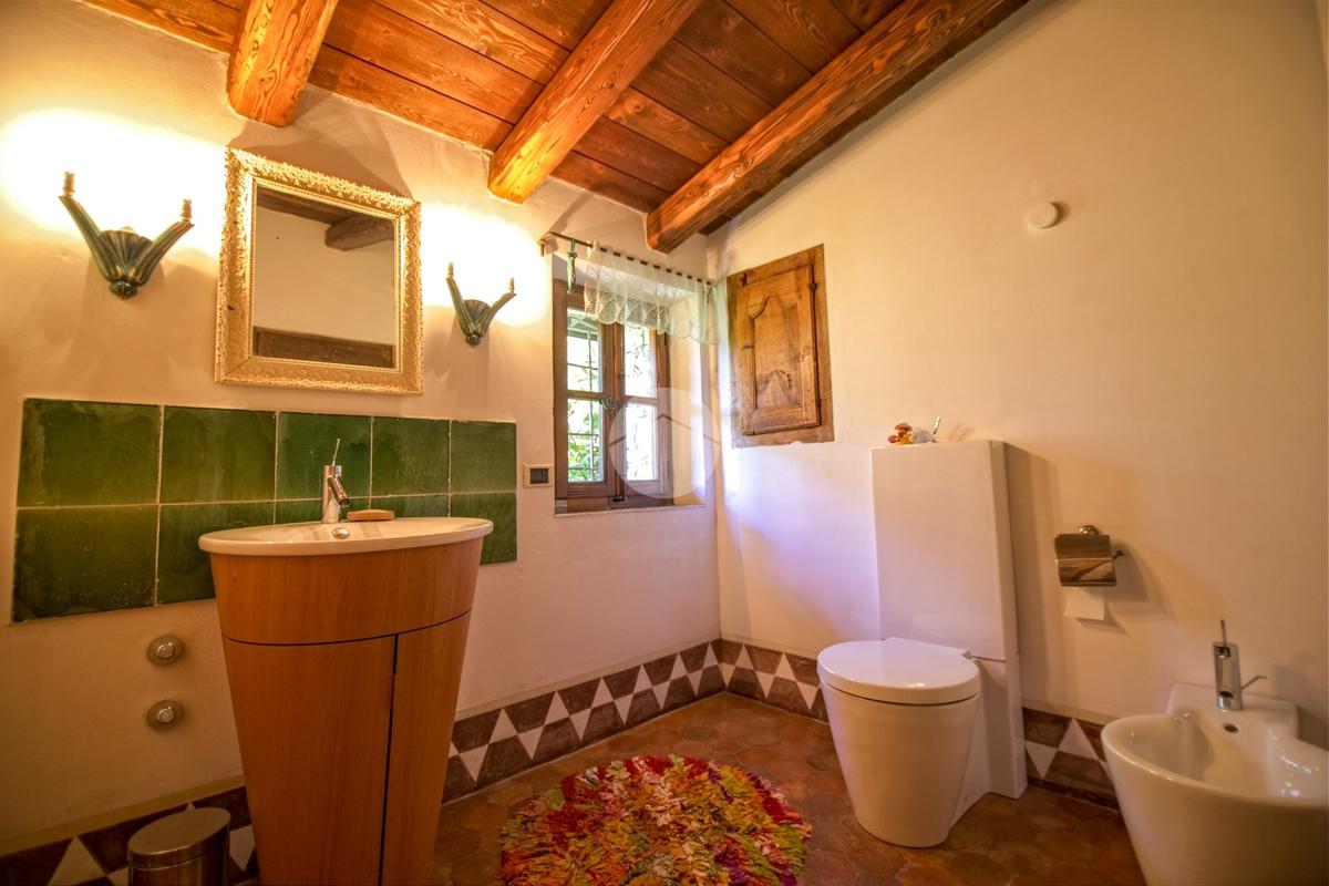 A fare da ingresso alla proprietà vi è un accesso carraio che si apre sul giardino, seguendo il vialetto in ciottolato arriviamo alla porta d’ingresso della casa, mentre sulla sinistra si trova un portico con camino ed un bagno di servizio, ideale per cene all’aperto durante le serate estive.