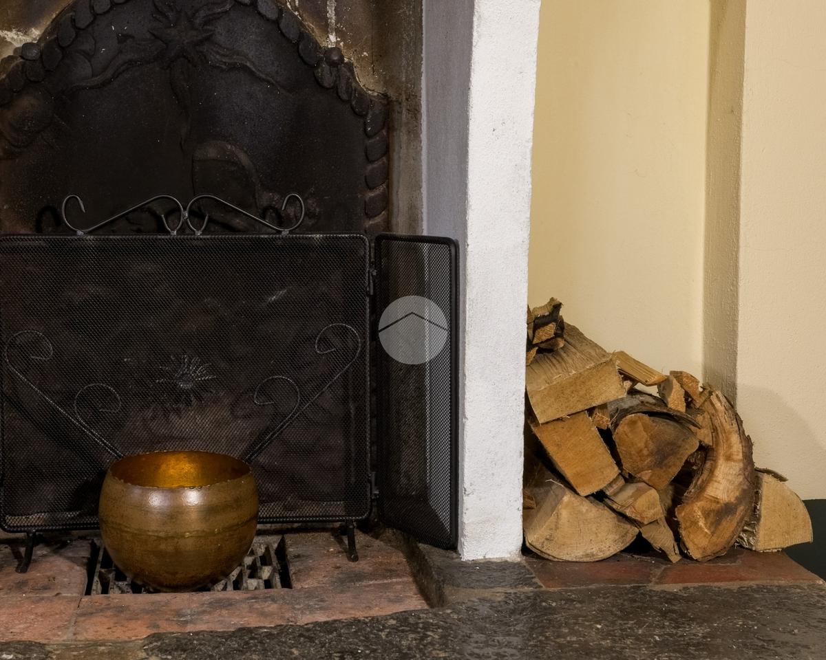 Beim Betreten des Hauses finden wir im Erdgeschoss auf der rechten Seite den Wohnbereich mit Kamin und auf der linken Seite eine charakteristische Wohnküche. Beide Räume haben Zugang zur Veranda und zum Garten mit Seeblick.