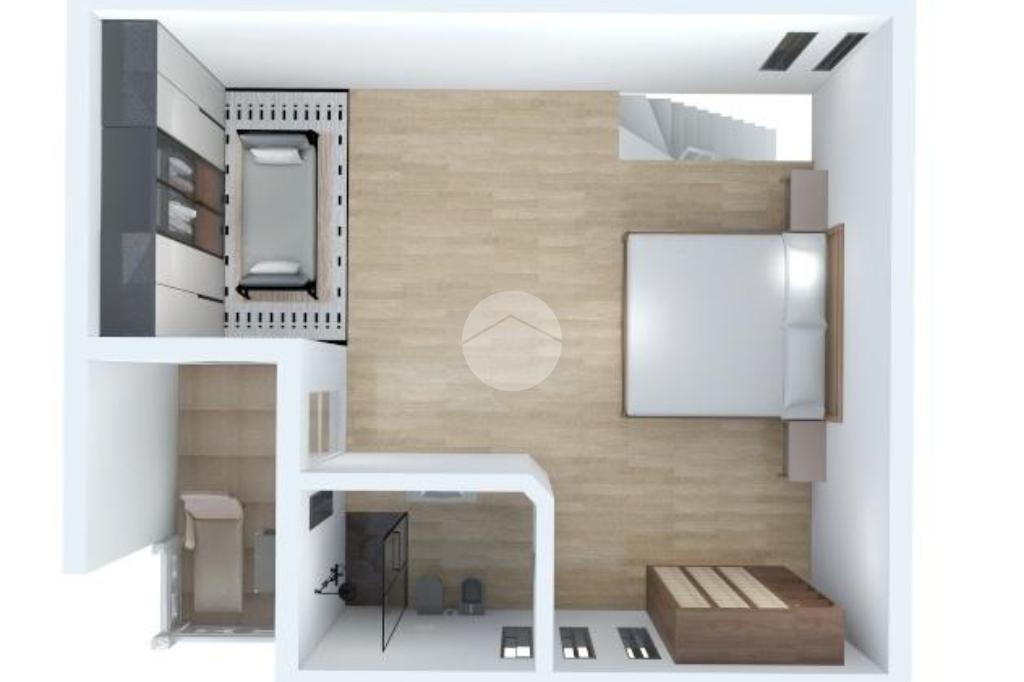 Al piano superiore troviamo la zona notte composta da un’ampia camera da letto matrimoniale, con balcone vista lago e bagno finestrato con doccia.