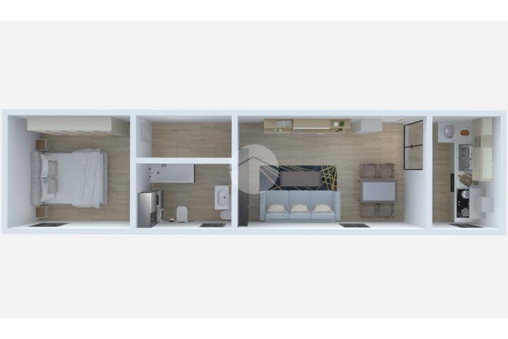 Die großzügige Wohnfläche macht sie zu einer guten Option sowohl für Paare als auch für Alleinstehende, die eine erste Wohnung in zentraler Lage und in der Nähe von Dienstleistungen suchen, oder auch als Ferienwohnung oder zur Vermietung.