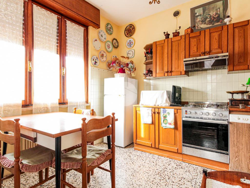 Al piano terra vi è il primo appartamento trilocale, composto da zona giorno, cucina abitabile, due camere da letto matrimoniali, un bagno finestrato con doccia e l’accesso interno al garage.